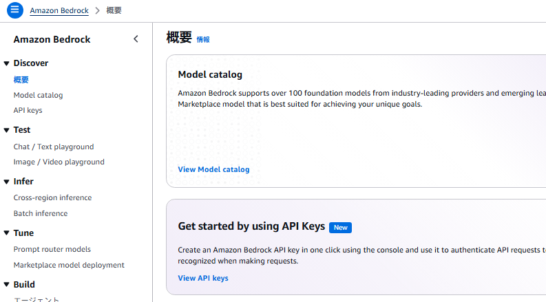 - Amazon Bedrockのダッシュボードにアクセス