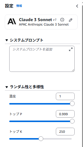 使用中のモデル(ここでは Claude 3 Sonnet)を示します。
