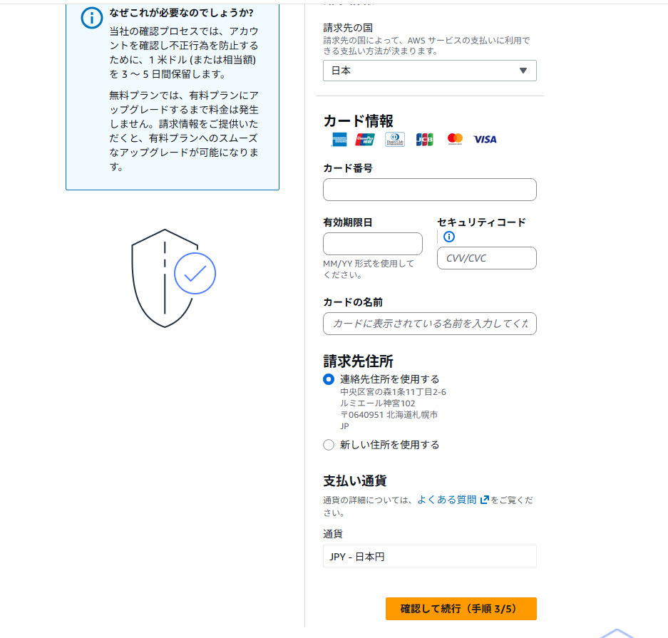 無料枠を使う場合でも、本人確認・不正利用防止のためにカード登録が求められます。