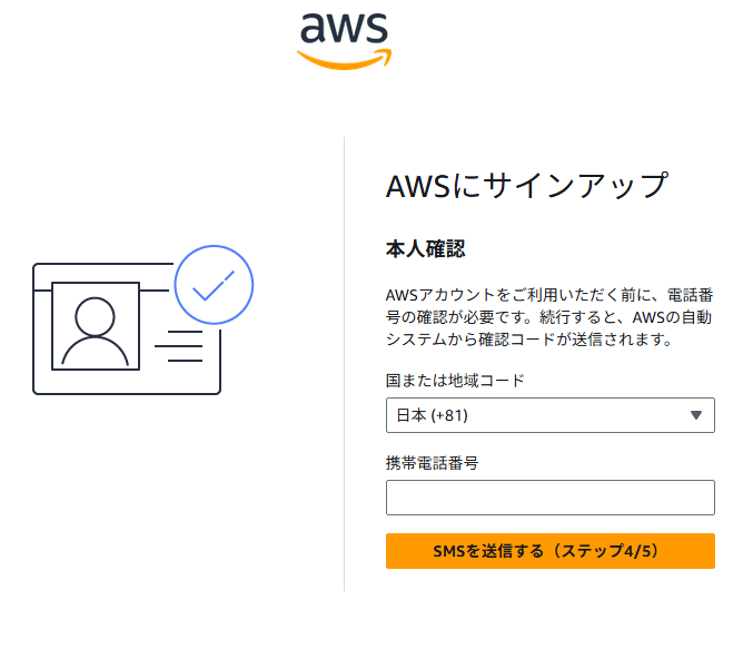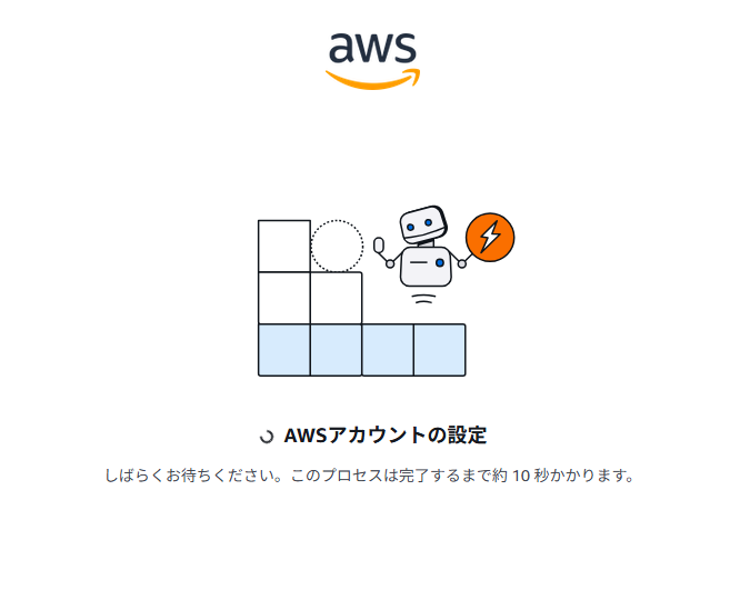SMS送信後、「AWSアカウントの設定」 の待機画面が表示されます。