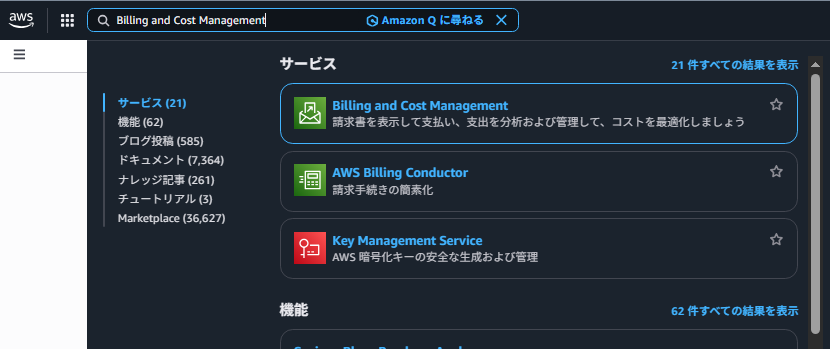 初期画面の左上にある検索、または「最近アクセスしたサービス」にある Billing and Cost Management をクリックして開きます。
