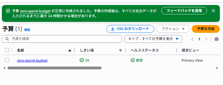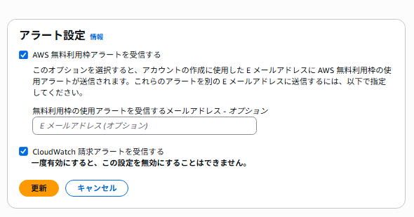 これで、無料利用枠の使用状況や請求額の変化をアラートで受け取れるようになります。