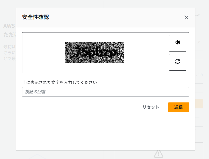 ポップアップで「安全性確認(画像認証)」が表示されたら、画像内の文字を入力して「送信」を押します。