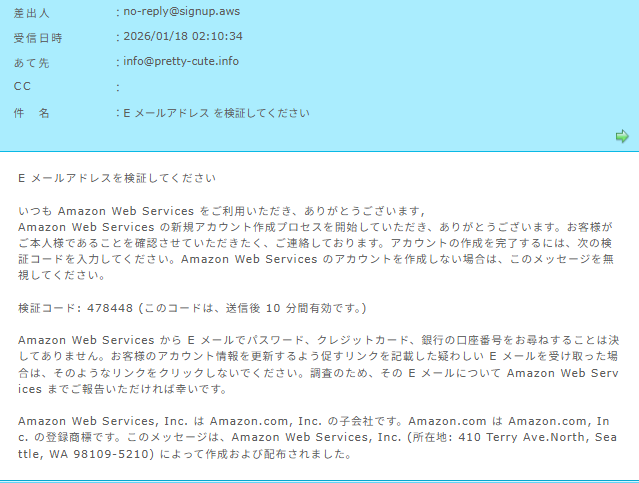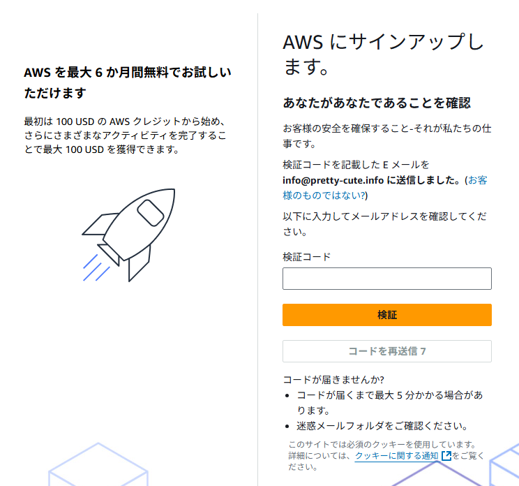 入力したメールアドレス宛に「検証コード(6桁)」が届きます。