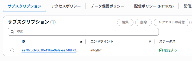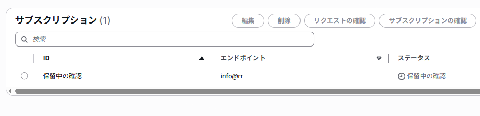 SNSコンソールでサブスクリプションの状態が