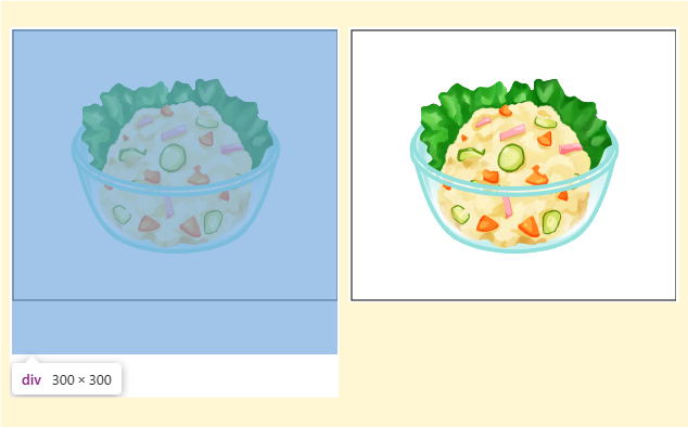 }CSS下の例では、要素サイズが 300px × 300px に対して、画像サイズは 300px × 250px。