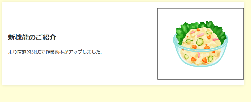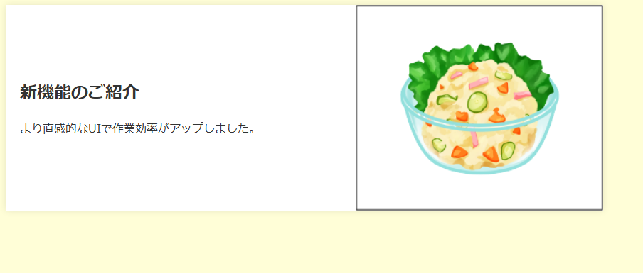 background-color: #ffe88d;CSSページや要素の背景色を指定するプロパティです。色はカラーコードや色名(例:red)でも指定できます。