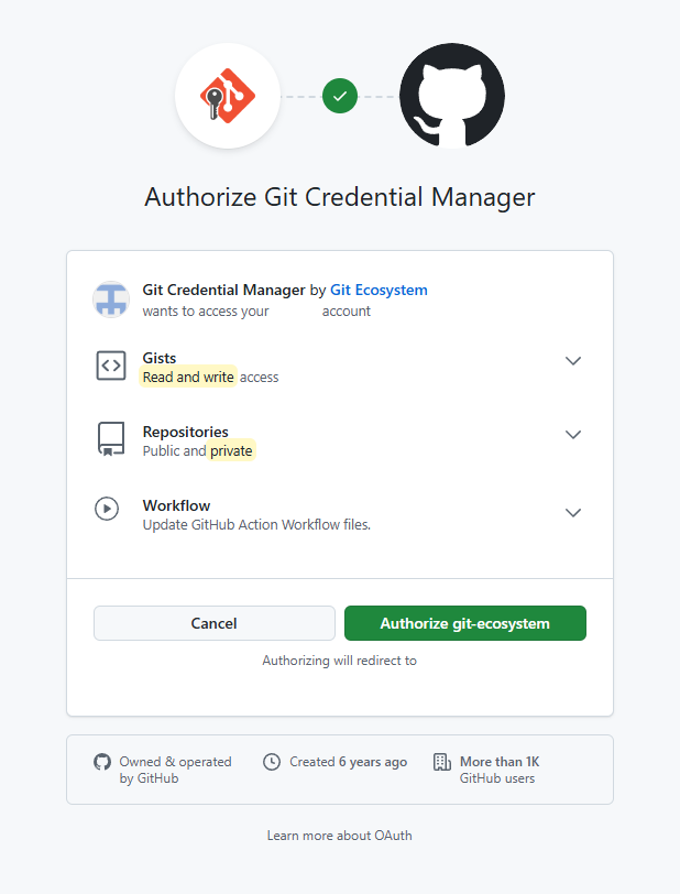 🔐 「Authorize git-ecosystem」 ボタンをクリックしてください。真っ白なページが表示されます。
