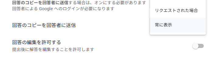 次に「回答のコピーを回答者に送信」というオプションを選びます。