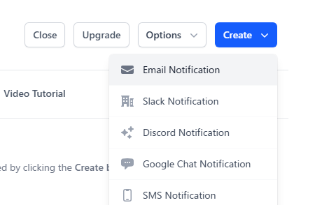「Create → Email Notification」を選び、メールの詳細を入力します。