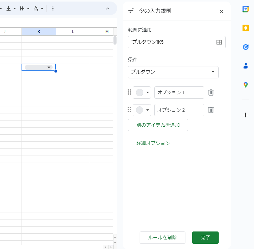 別のルールのプルダウンを作成
