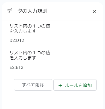 データ、データの入力規則を選択した場合は、ルールを追加も選択します。