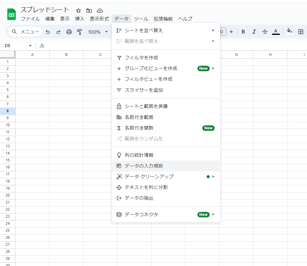 データ、データの入力規則を選択します。