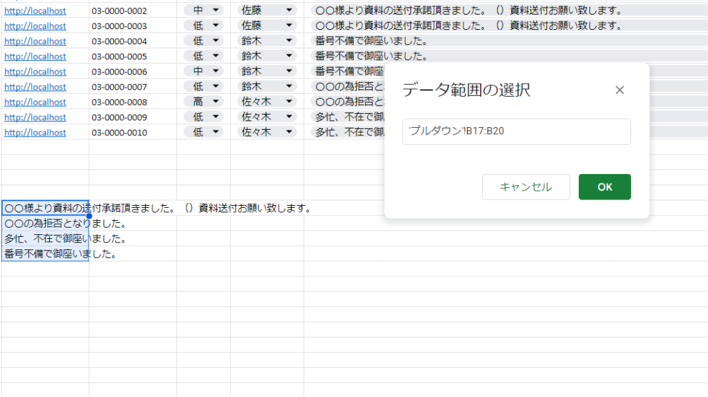 - 必要に応じてシート内の値を範囲として指定することで、リストを効率的に作成できます。