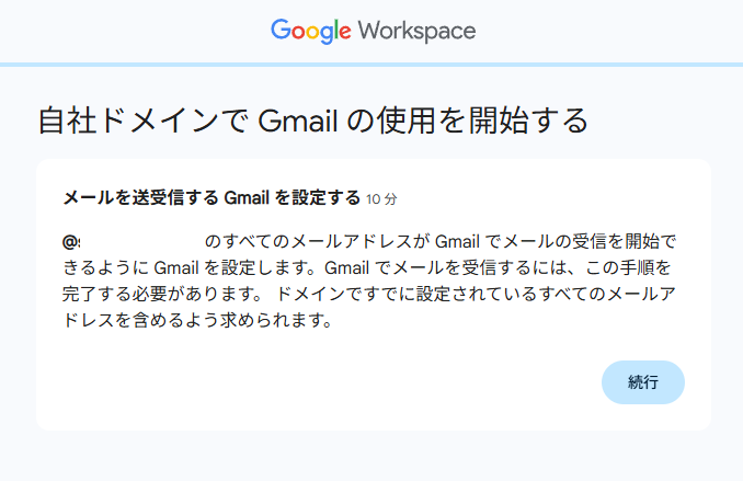 → この作業を行うと、Google Workspace の各アプリ(Gmail、カレンダー、ドライブなど)が利用可能になります。 - 自社ドメインで Gmail を使用開始する(約10分)