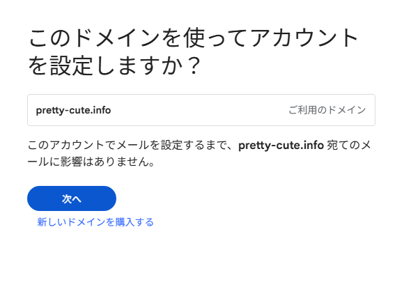 入力したドメインでアカウントを設定するか確認されます。