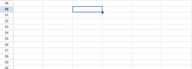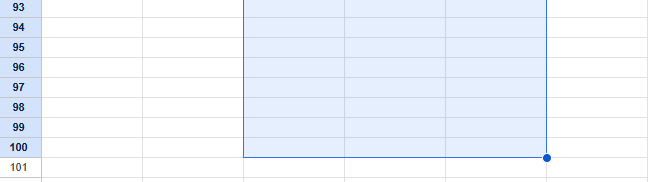 下記は、まず C50 をクリックして選択開始位置を決めます。次に画面をスクロールし、Shift キーを押しながら E100 をクリックしてください。C50 から E100 までのセル範囲が選択状態になります。