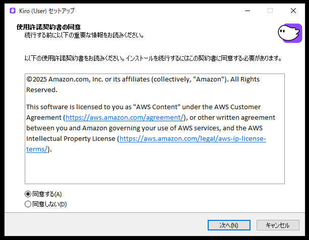 - Kiro のインストール手順(ライセンス同意〜インストール完了まで)