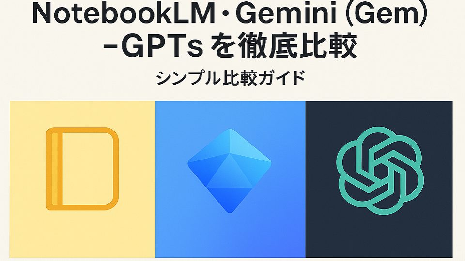 LMnotebook、Gemini(Gem)、GPTsはいずれも「資料を読み込み、検索し、情報を確認できる」強力なAIツールです。違いは提供元や得意分野にあり、利用者の環境や目的に応じて最適な選択が変わります。
