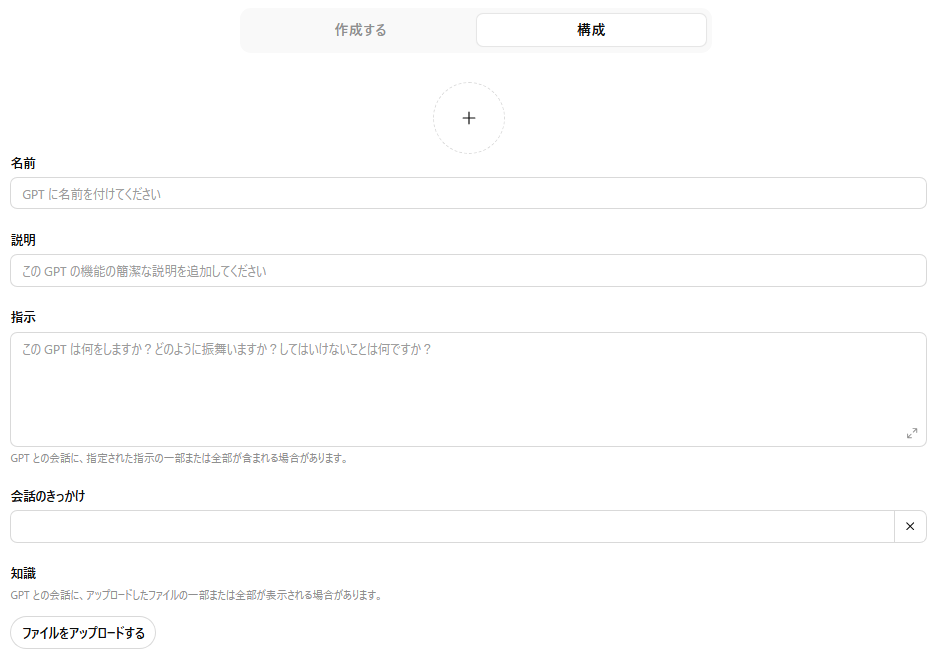 - 資料をアップロードできるカスタムGPTを設定