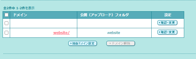 まず、ロリポップの管理画面にログインし、「独自ドメイン設定」へ。解除したいドメインの左にあるチェックボックスを選択します。