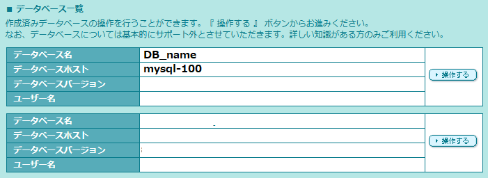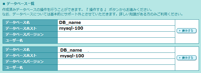 2. 2で確認したデータベース名の「操作する」をクリック