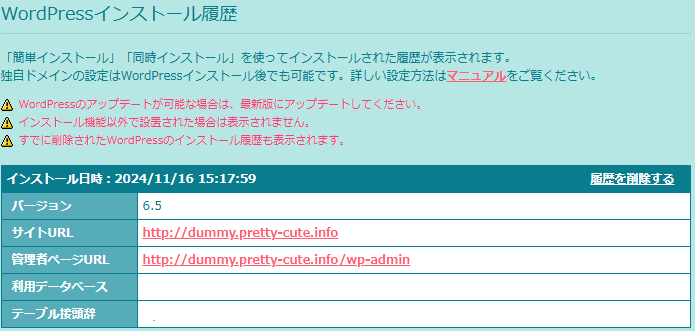 同じデータベース内に複数のWordPressがある場合、削除するWordPressのテーブルのみを削除するために、この接頭辞をメモしておきます。