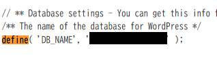 2. define(‘DB_NAME’,’データベース名’); の部分を確認