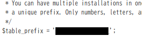 2. \$table_prefix = ‘接頭辞_’; の部分を確認
