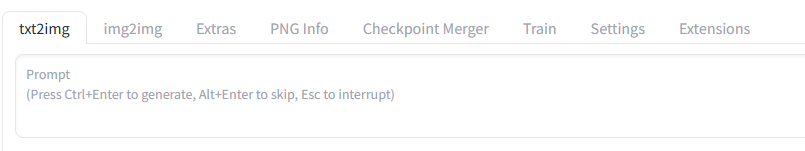 - txt2img:テキストから新規に画像を生成するメイン機能。