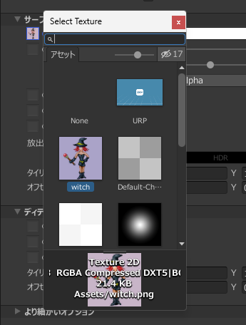 - 作成したマテリアルを選択し、InspectorウィンドウでShaderドロップダウンメニューから目的のシェーダーを選びます。