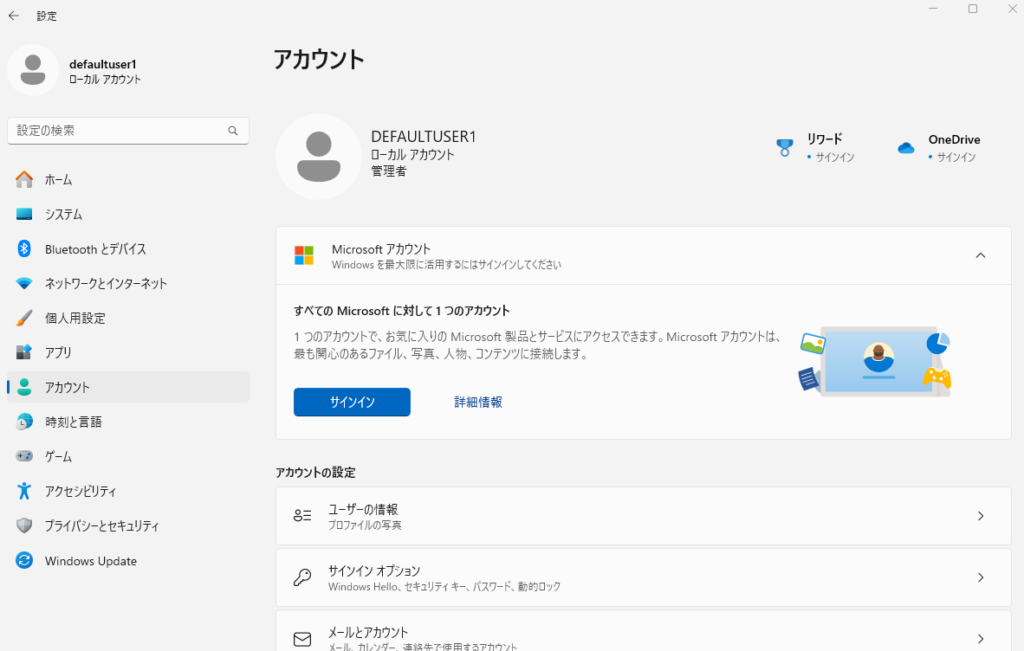 - 管理者権限が付与されたMicrosoftアカウントでログインし、設定や操作ができることを確認します。