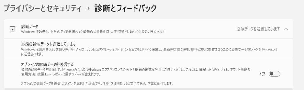 - 「オプション診断データを送信する」のスイッチをオフに切り替えます。