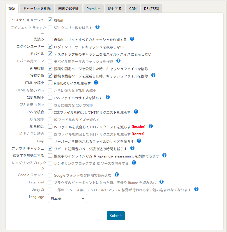 以上のように、Cocoonテーマはパフォーマンス面で最適化されており、WP Fastest Cacheの一部機能と重複または競合するため、上記の項目にはチェックを入れないのが安全です。