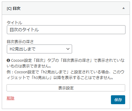 ウィジェットエリアを選択:サイドバーやフッターなど、目次を表示したいウィジェットエリアを選択します。