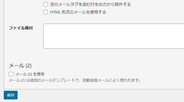 「メール (2)」は、フォーム送信時に追加のメールを送るための機能です。