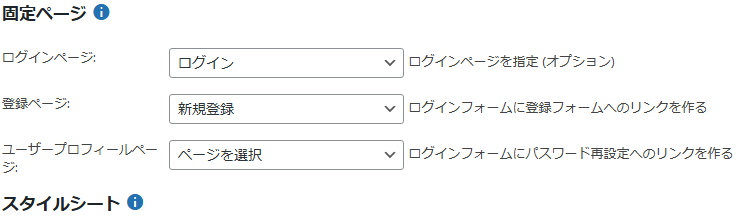 - 「ログインページ」 のドロップダウンメニューから、作成した「ログイン」ページを選択。