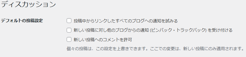 • ☑ 新しい投稿に対し他のブログからの通知(ピンバック・トラックバック)を受け付ける